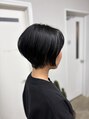 後頭部のボリューム感と襟足のタイトな仕上がりで、首元をスッキリ長く、頭の形を綺麗に見せるショートヘアです。黒髪や暗髪でも重たく見えないよう、質感調整で柔らかい束感を作っています。