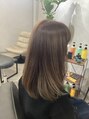 ハイライトせずに、少し落ち着いた色に。パープル系カラーで、黄色味を抑えた色味に仕上げ。サイドにレイヤーで軽さを。