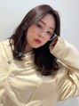 韓国風センターパート暗めカラーラベンダーアッシュグレージュ