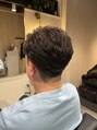 サイドとバックをツーブロックにし刈り上げました。直毛をスタイリングしやすいように毛先にパーマをプラスしました。