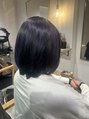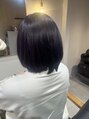 ボブベースの顔周りとバックレイヤーをプラスして軽さと動き出るように調節。全体にハイライト入れて、オンカラーは黄みを抑え鮮やかでビビットなパープルを使用。