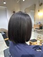 肩くらいのボブスタイル。まとまりを重視して量感を調節しました。トリートメントをプラスしてツヤとまとまり感をアップ。飽きたらレイヤープラスしてもOKです。