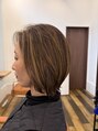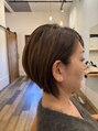 柔らかなピンク系の暖色カラーで、髪にツヤと血色感をプラスした大人向けのナチュラルボブスタイル。暖色でも重く見えないよう、質感と丸みのバランスを意識しています。