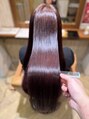 髪質改善を続けていただいてるお客様にピンクレッドの髪質改善カラーをさせていただきました。以前入れたハイライト部分にもしっかり色味が入り、毛先までツヤ感が感じられる仕上がりになりました。