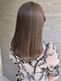 髪の内部から補修しながら透明感のある色味を重ね、素髪のような艶と柔らかさを引き立てる髪質改善カラー。まっすぐすぎない自然なストレート感で、手ぐしでまとまる扱いやすい仕上がりに。毛先は程よく内に入り、上品で優しい印象を演出します。