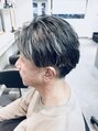 全体に重めスタイルに多めのハイライトを施しています。シルエットは丸みがありながら立体的に見えるようにしています。白髪がぼけてくれるのも◎