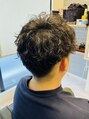 しっかりめのカール感を出したメンズパーマスタイル。襟足は低めに刈り上げ、重さを残しつつもすっきりした印象に。動きと立体感が出て、スタイリングも簡単です。