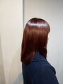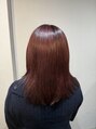 カラー剤にトステアを入れて、艶とダメージ補修。いつも褪色が黄色っぽくなりやすいので、できるだけ黄色になりにくいヴァイオレット系にレッドを入れて、ボルドールビーにしました。