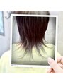 動きのあるおしゃれウルフにインナーカラーをプラス。レイヤーの隙間からさりげなく色味が見え、個性と抜け感を演出します。下ろしても結んでも表情が変わり、周りと差がつく大人カジュアルなスタイルです。