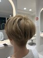 後頭部に丸みをつくったショートシルエットで横顔までキレイに!!柔らかいベージュカラーが動きと軽さを引き立て女性らしさアップ♪