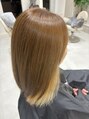 表面はツヤのあるナチュラルブラウンで、大人っぽく上品な雰囲気に。毛先には明るめのインナーカラーを残して、“さりげないアクセント” をプラス。派手すぎず、でも普通すぎない。ちょうどいいデザインカラーです◎