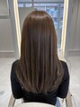 柔らかさと上品さを兼ね備えた、ナチュラルブラウンカラーのロングスタイル。赤み・黄みを抑えたブラウンで、光に当たると自然なツヤが際立ち、髪をきれいに見せてくれます。巻いても、ストレートでも扱いやすい万能スタイルです。