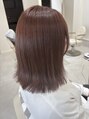 深みのあるパープルブラウンで艶と色気をプラス。毛先は軽く外ハネにし、重く見えすぎない動きのあるミディアムスタイル。巻かずにラフでも決まります。