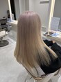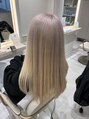 しっかりブリーチベースに、ほんのりピンク味をプラスすることで、黄ばみを抑えたまろやかなハイトーンに仕上げています。ツヤ感と透け感のバランスが絶妙で色落ちは柔らかいベージュ~ホワイトベージュに抜けていくので、長くハイトーンを楽しめます◎