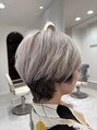 しっかりブリーチベースに黄ばみを抑える補色をプラスし、透けるような淡いベージュに仕上げています。光に当たるとより柔らかく見える、上品で抜け感のあるハイトーンカラーです。