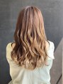 ハイライトで立体感と透明感をプラスしたミルクティーベージュ。赤みを抑えた柔らかいカラーで、巻いた時の動きも綺麗に見える大人可愛いロングスタイルです。