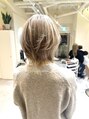 ハイトーンカラーのウルフボブスタイル。顔まわりに入ったレイヤーでウルフっぽさをミックスし面長をカバーしつつ個性を出したオシャレなスタイルです。