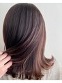 ブリーなしのカラーで一度明るくし、褪色も考えて低明度のアッシュブラウンでオンカラー。ワンカラーでは出せない透明感を再現しました。