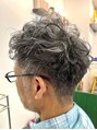 グレイヘアを活かした立体感とトップに動きを出したゆるめのスパイラル風パーマ。襟足はすっきり締めて清潔感アップしました!