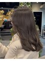 赤みを抑えた柔らかいグレージュ。自然光でも室内でも透明感が出る上品カラーです。【#外国人風ハイライト/バレイヤージュ/外国人風スタイル/ダブルカラー/ハイライト/イルミナカラー/ブリーチ/レイヤーカット/ハッシュカット/髪質改善トリートメント/原宿/】