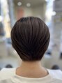 丸みのあるやわらかな大人ショート。襟足はスッキリ整え、後頭部に丸みが出るようにカットしています。横からのシルエットもきれいで、乾かすだけでまとまりやすいショートです。