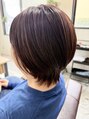 ピンクブラウン×ソフトウルフ カラーはピンクブラウンで赤みを出しツヤが出るように少し明るめで染め、ボブから少し変化させて襟足が少し長めのトップにレイヤーを入れてソフトウルフに。丸みと襟足のタイト感が引き締まってスッキリしました。