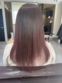 深いローズピンク×髪質改善トリートメントで、自然な艶とサラサラとまとまる髪に。髪質改善トリートメントは施術の最後にアイロンを通すことにより、ヒート(熱)による反応で、トリートメントの内部と外部補修の成分をしっかり髪に閉じ込める事が可能です。