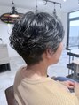 パーマ部分は動きとボリュームが出るようにして他はタイトにスッキリする事でハンサムなスタイルに◎