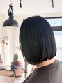 ギリギリまとめられる前下がりボブ。自然に内巻きに入るようにカットして、毛先の厚みが出ないよう毛量調整して軽めのボブに。風になびく時、かきあげる時に毛先の重なりが軽くしなやかに流れる感じに。おろしてもまとめてもスッキリ軽いスタイルでぬ。