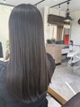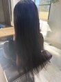 髪質改善ストレートで、自然な艶のあるストレートに。beforeで毛先の不揃いで軽くなりパサついている所を10センチカットし、揃え重さを出す事で傷みにくくまとまりやすい状態に。髪質改善で根本の強いクセと毛先の少しクセ戻りした部分を合わせて綺麗に◎