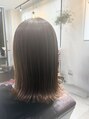 髪質改善縮毛矯正でツヤと自然なストレートヘアに。仕上げにアイロンで軽く外ハネにしています。薄くオイルをつけて、しっとりまとまる感じもプラス。