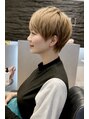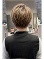 【カット】トップにレイヤーを重ね、軽さと立体感を設計したボーイッシュショート。セニングで質感を整え、動きが出るように仕上げています。【カラー】カラーはブリーチ一回後にナチュラルベージュをオン。柔らかさと透明感を両立させた大人ショートです。