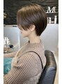 【カット】ナチュラルモードな前下がりショート。ラインはややキリっと、質感は柔らかく。【カラー】カラーは7トーンのオリーブベージュで透明感と落ち着きを両立させた大人ショートです。