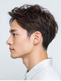 前髪を自然に分けた柔らかなセンターパート。毛先に軽い動きをつけ、清潔感と余裕を感じる大人の雰囲気に仕上げています。顔まわりはタイトに整え、トップはふんわり。30代の男性に合う“好印象×上品”バランスのスタイルです。