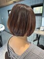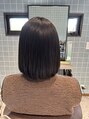 切りっぱなしボブは可愛い反面、髪質によっては毛先が重く見えたり、外ハネがつきにくい場合もあります。そこで、表面にほんの少しだけレイヤーを入れ、毛先の動きが出やすくなるよう調整しました。