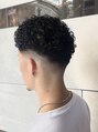 強めのパーマでトップに存在感を出した、スキンフェードスタイル。サイドと襟足をしっかり削り、パーマの動きを最大限に引き立てます。