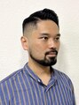 サイドの張りが強く出る骨格と毛質なのでハイフェードに設定。力強い毛流はセニングを入れずに面を意識したカットラインになっています。スタイリングは艶強めのハードなグリースをしっかり撫でつけコーミング。