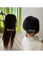 トリートメントのみでここまで艶がもどります!スカスカになってしまっているところにリンク式トリートメントをするとなかに栄養が入り少し色を落ち着かせたようにも見えます!