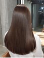 髪質改善ストレートで仕上げた柔らかい質感の艶スタイルです。クセや広がりを抑えつつ、自然なまとまりと上品なツヤを引き出しました。乾かすだけで整うので、朝の支度がとても楽に。ダメージが気になる方やストレートの硬い質感が苦手な方にもおすすめ。