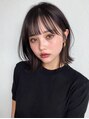 裾は外巻き、はち上は内巻きに巻いてスタイリング。カラーグレーの暗めでで柔らかさと艶感をプラス。