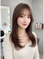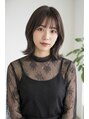 柔らかなミルクティーベージュが透明感を引き立てる外ハネミディ。自然なレイヤーとゆるやかなカールで軽やかさをプラスし、動くたびにツヤが揺れる上品なスタイルに。肌なじみの良いカラーで、柔らかく洗練された印象を与えます。