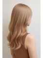 柔らかなピンクベージュが光に透けて、女性らしい柔らかさと温かみを感じるロングスタイル。肌馴染みの良いまろやかなトーンが、血色感を自然に引き立てます。中間から毛先にかけてゆるやかなウェーブを入れ、動きと抜け感をプラス。