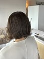 ブリーチなしでできるミルキーなグレージュ。切りっぱなしボブをアイロンでくびれるように巻きました。