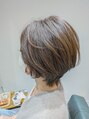 ショートヘアグレージュカラーで、明るめの白髪染めで伸びてきても馴染むので白髪が気になりにくい後頭部にボリュームを出してメリハリのある絶壁もカバーできるスタイルです