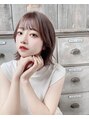 オリーブグレー/前髪/ボブ/マロンベージュ/レイヤーカット/小顔
