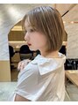 オリーブグレー/前髪/ボブ/マロンベージュ/レイヤーカット/小顔