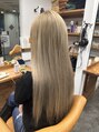 全体をブリーチでトーンアップし、柔らかいベージュで仕上げた艶感ロング。ムラのない発色で、派手すぎず上品な明るさを楽しめます。髪がパサつきやすい、ダメージが気になる方も髪質に合わせて施術するので安心して挑戦できます。