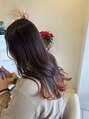根元は落ち着いたブラウン、毛先にかけて暖色をやわらかくつないだグラデーションカラー。動きに合わせて色味が表情を変え、巻いた時も立体感がアップ。派手すぎず、さりげなく個性を楽しめる大人カラーです。