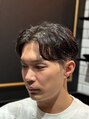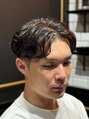 センターパートをベースにニュアンスパーマをかけたスタイルです。センターパートに飽きた方のアクセントや、スタイリングも楽になります。(新座/バーバー/メンズ)〈理容室〉