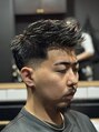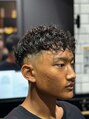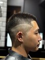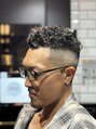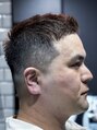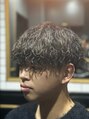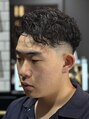 堅い印象になり過ぎないように、かきあげて流れが自然と出るような強さでパーマをかけました。フェードとの相性も抜群です。(新座/バーバー/メンズ)〈理容室〉